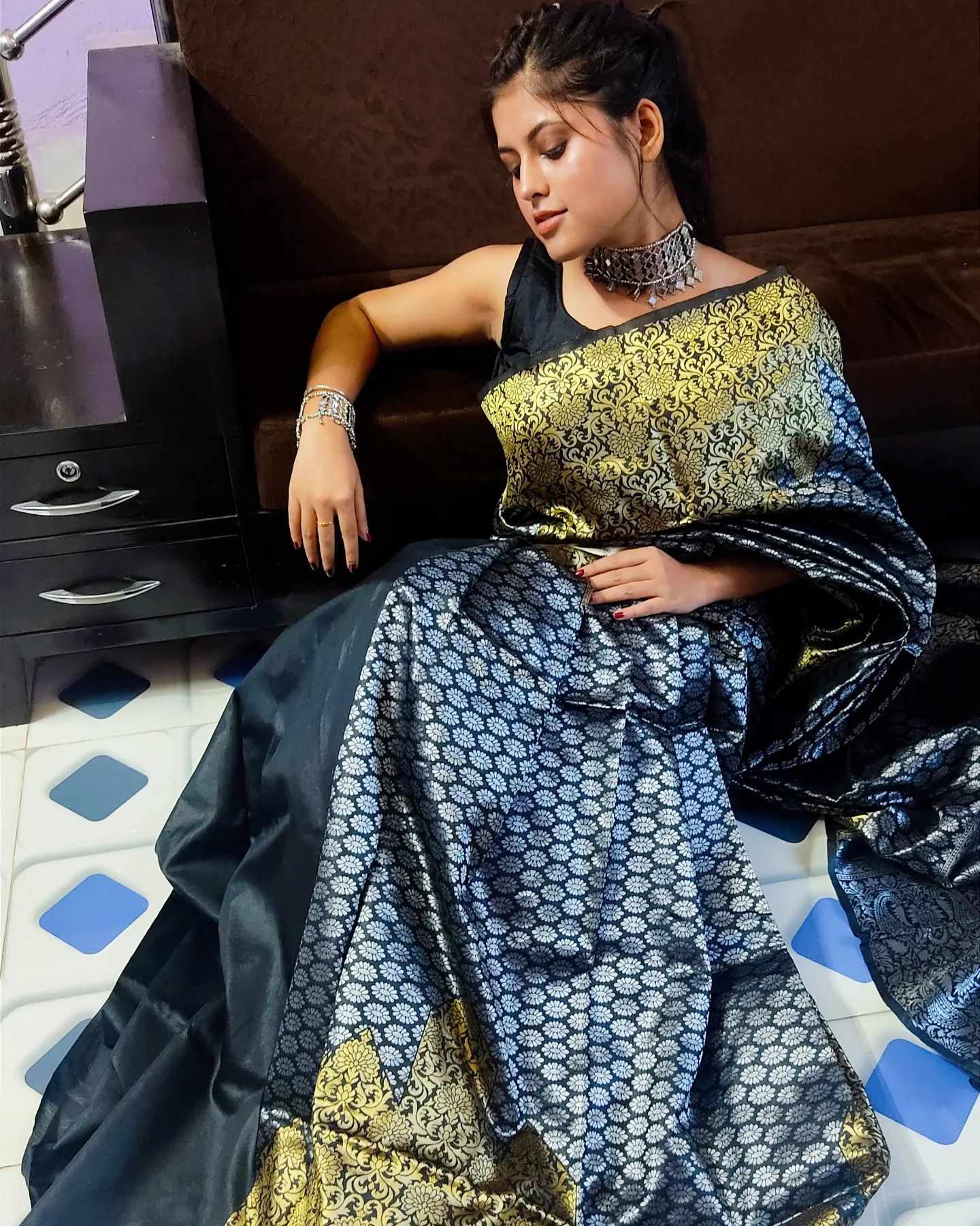 STUNNING BLACK COLOUR SAREE WITH BLOUSE