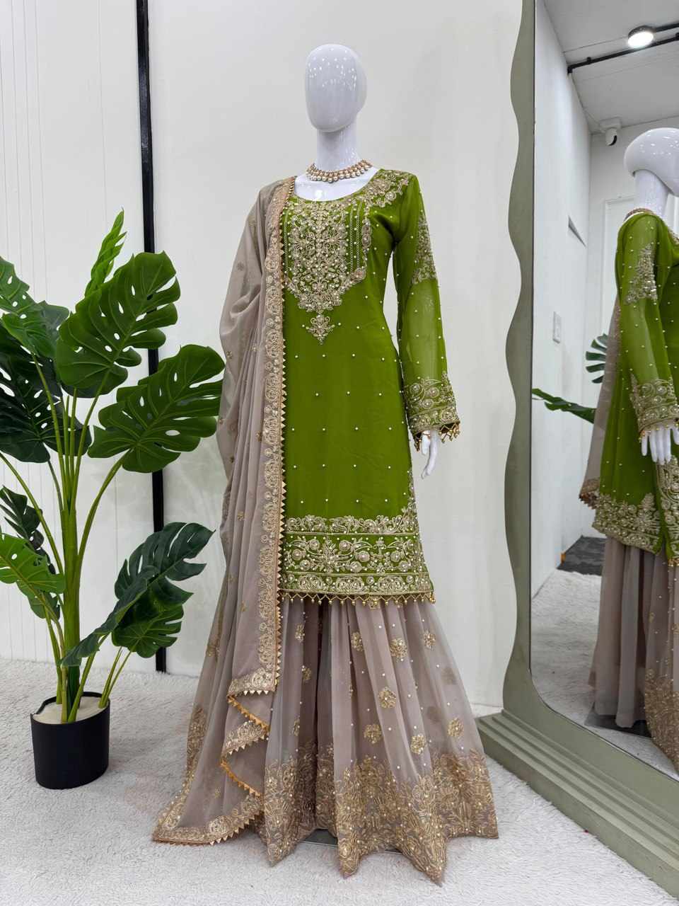 Reviews for KD 1486 Green Faux Georgette with inner Beautiful Designer Suit
