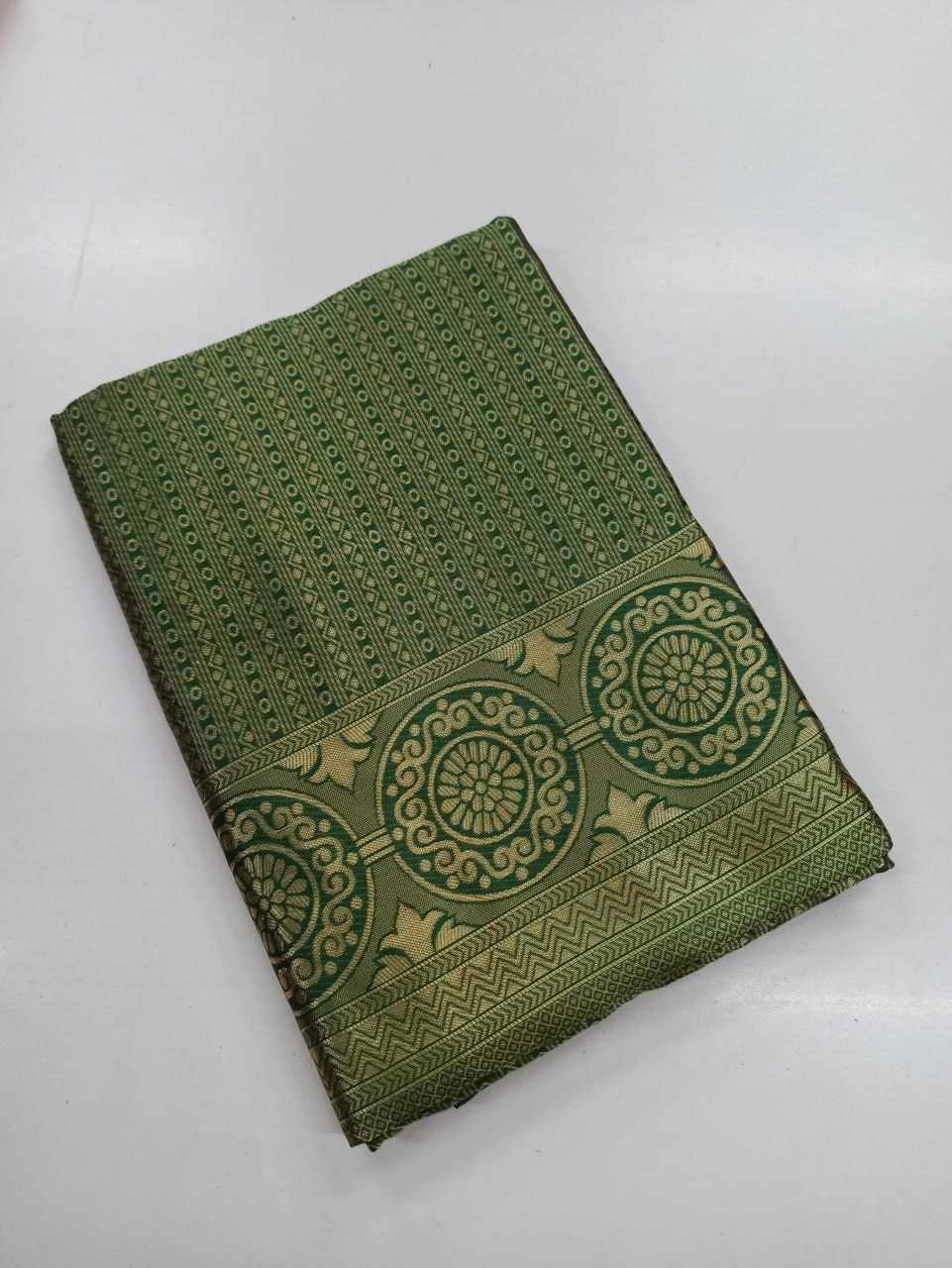 | Name : | MF 1690 GREEN SOFT LICHI SILK SAREE |